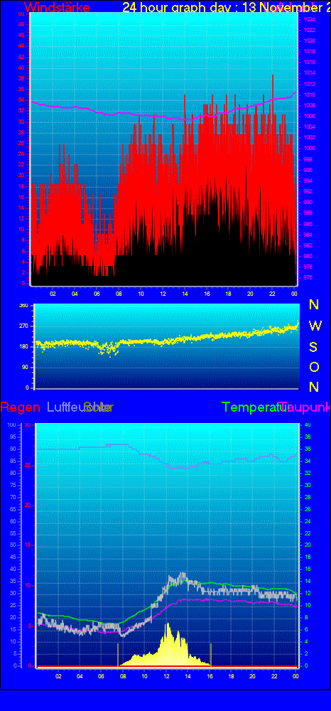Höchstes Windspitze = 48.1 km/h aus 270°( W ) tag 13 zeit 22:14
