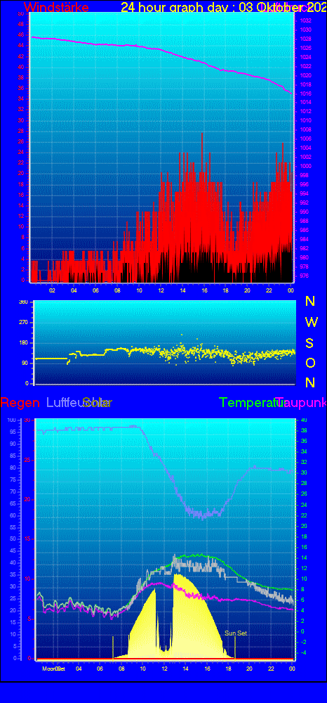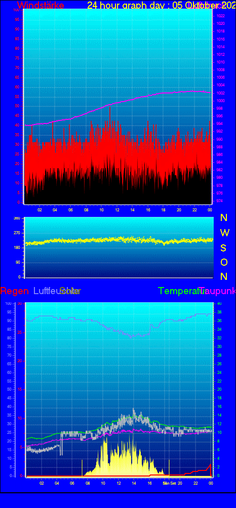 Höchstes Windspitze = 51.8 km/h aus 234°( SW) tag 05 zeit 22:20
