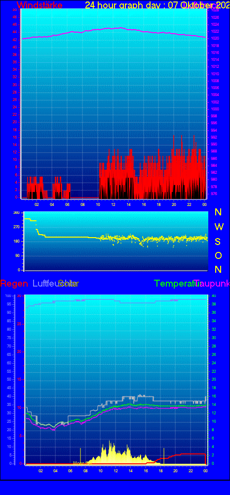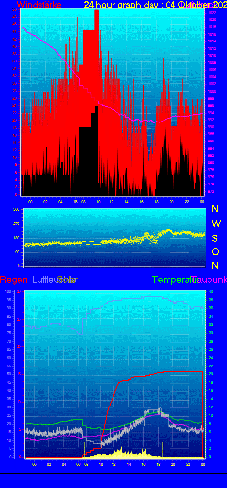 Höchstes Windmittel = 31.8 kmh aus 216°( SW) tag 05 zeit 10:52